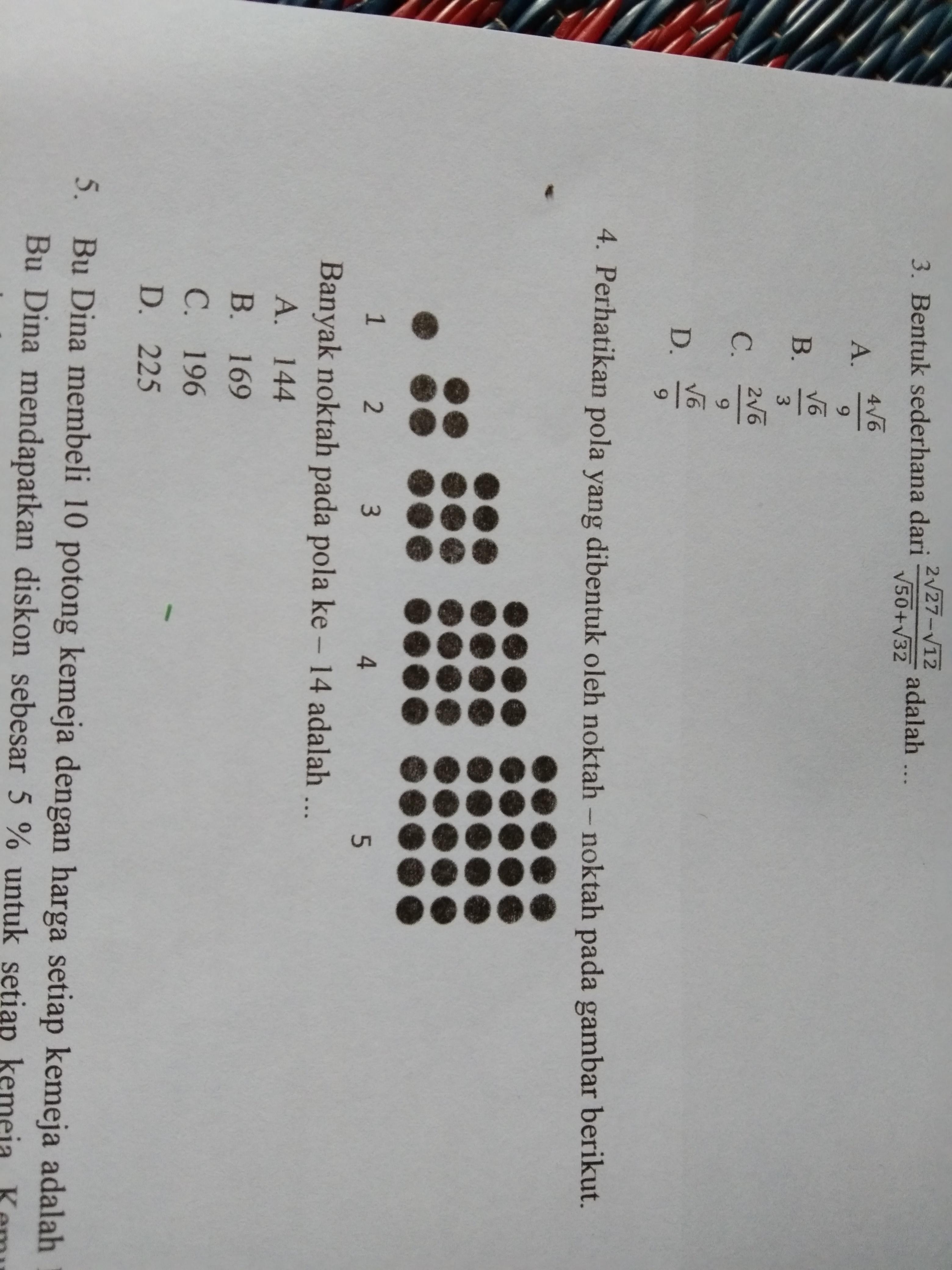 May 03, 2021 · cara mengerjakan akar kuadrat 169. More images for 169 kuadrat » Pada masa sebelum kalkulator ditemukan siswa dan profesor harus menghitung akar kuadrat secara manual. Persamaan garis singgung di titik a(5,12) pada lingkaran ๐ฅ2 + ๐ฆ2 = 169 adalah…#sbmtpn#utbk#unbk Over 80% new & buy it now; Apr 16, 2021 · contoh soal bilangan kuadrat. Cara menghitung akar kuadrat secara manual. 1 disebut bilangan kuadrat karena merupakan hasil dari 1 pangkat dua 4 disebut bilangan kuadrat karena merupakan hasil dari 2 pangkat dua Bab.la is not responsible for their content. Bilangan yang di pilih untuk dikalikan dengan bilangan itu sendiri ialah 1o. $9^2 = 81$ $6^2 + 8^2 = 36 + 64 = 100$ kuadrat sisi terpanjang adalah 81 sedangkan jumlah kuadrat. Pada dasarnya setiap bilangan memiliki dua akar kuadrat. Karena 169 > 146 maka segitiga pada opsi a adalah segitiga tumpul.